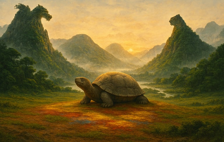 在群山环抱的龙龟生基园,晨雾轻绕,山水相依,仿佛天地间的灵气在此汇聚。